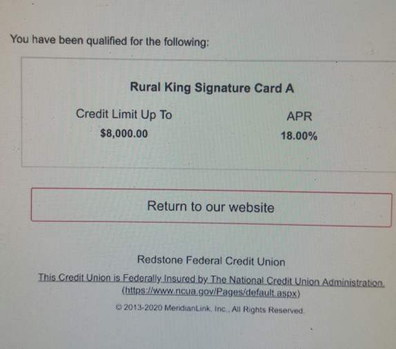 Youre a customer of Rural King and now youre also a member of Redstone Federal Credit Union. Compare Credit Cards from Top-Rated Card Providers.